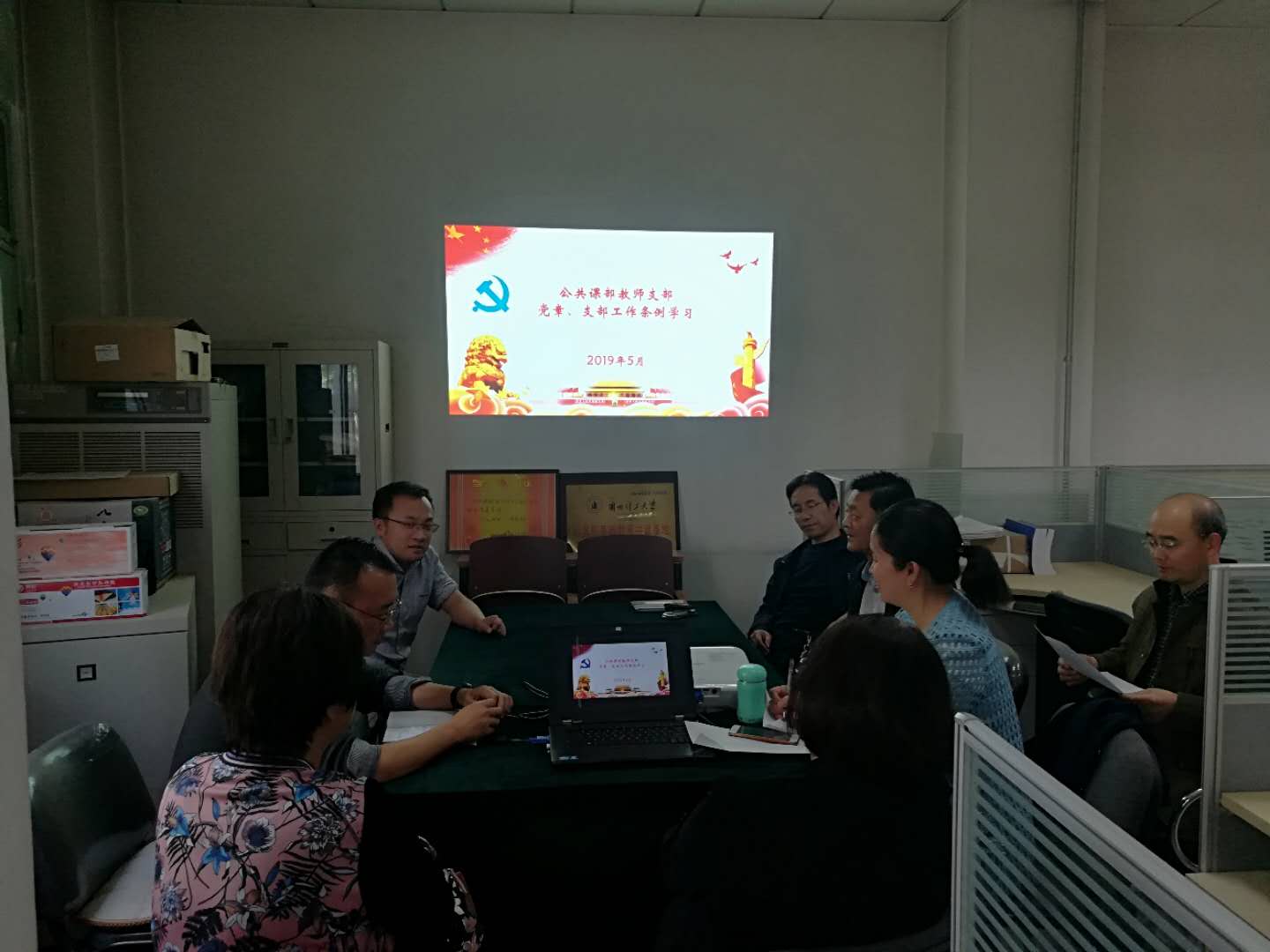 2019年5月14日下午,公共课教学部按照原定计划在系办公室进行了主题党日活动。本次主题党日活动按 “学习日+议事日”开展。