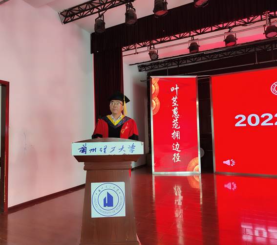 党委书记高国礼为2022届甘肃省优秀毕业生代表颁发荣誉证书,为校友联络员颁发聘书,希望他们继续砥砺前行,同时关心和支持母校发展,常回母校看看。典礼最后,学生代表向老师献花,感恩学校和老师的辛勤培养。伴随着在校生献唱的《凤凰花开的路口》,此次学位授予仪式圆满落下帷幕。