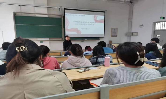 学生办主任潘永锋老师围绕“抢抓春招关键期、全力攻坚促就业”主题进行动员教育,桃子视频