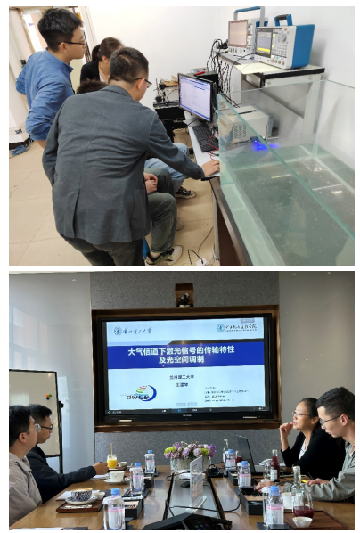 访问期间,王惠琴教授与重庆邮电大学郭磊教授就新型无线光通信技术、无人机光通信系统的最新研究进展进行了交流。双方就今后建立合作研究机制及联合培养研究生的可行性等方面进行了积极、有益的探讨。此次访问促进了无线光通信领域的学术交流,在开拓学术视野的同时,进一步培养了学生的创新意识与学术能力,对今后科研工作的开展具有重要意义。(撰稿:王惠琴;审核:高国礼)
