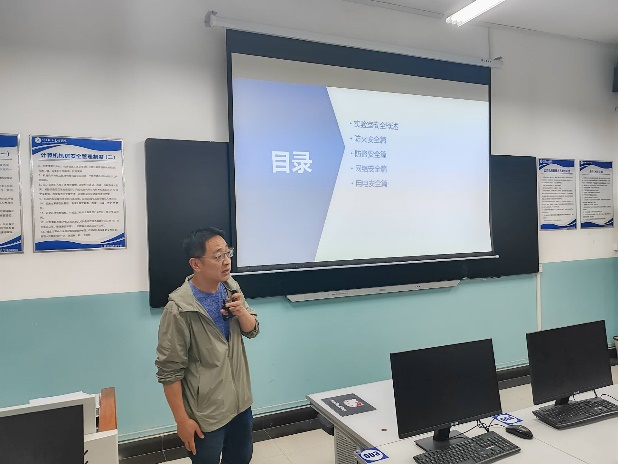 会上,实验中心主任马维俊就结合我院实验室安全、实验室防火、实验室防盗、实验室网络安全及实验室用电安全等方面做了介绍及事例分析。