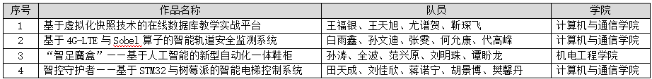 的王福银、王天旭等同学的作品“基于虚拟化快照技术的在线数据库教学实战平台”,白雨鑫、孙文迪等同学的作品“基于4G-LTE与Sobel算子的智能轨道安全监测系统”,田天成、刘佳欣等同学的作品“智控守护者——基于STM32与树莓派的智能电梯控制系统”,以及机电桃子视频