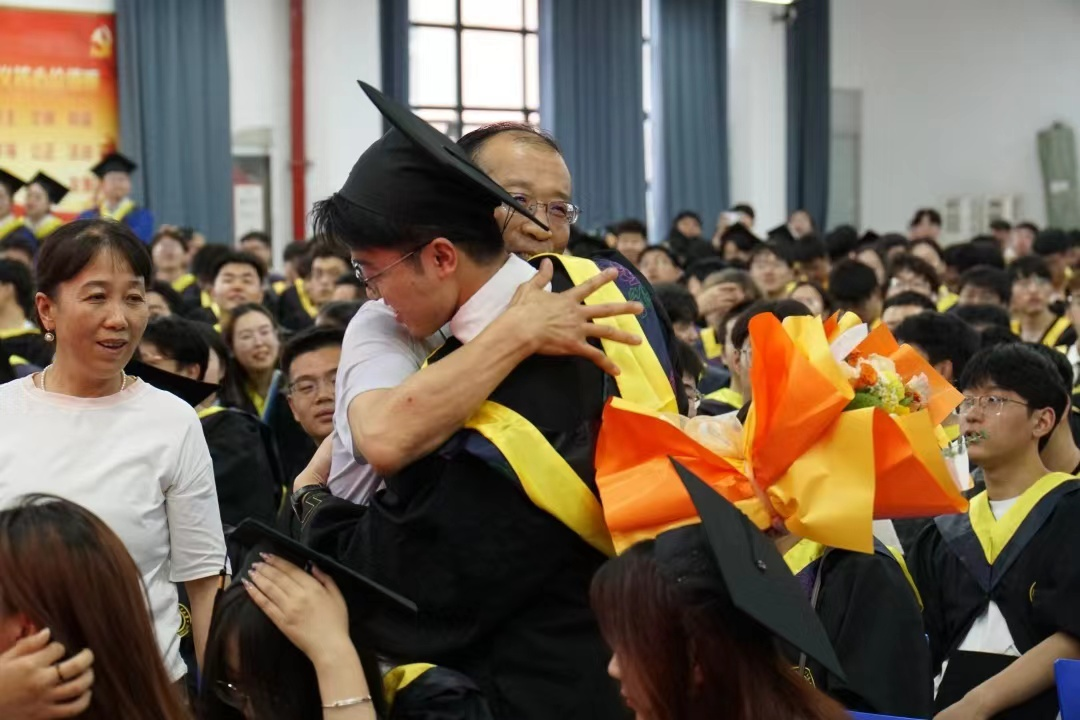 学生家长代表也来到了毕业典礼的现场,学生手捧鲜花送给自己辛勤抚育,默默支持他们的父母。
