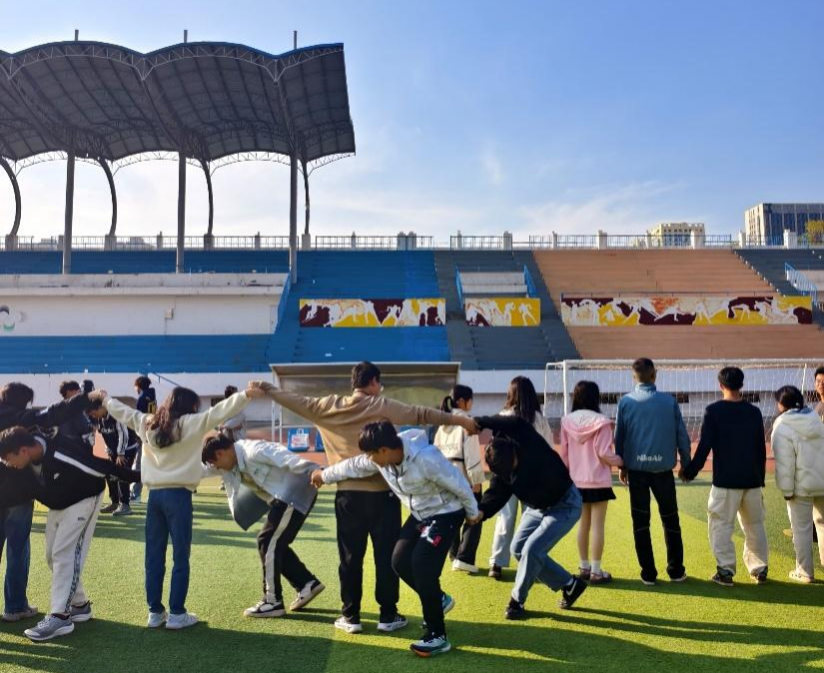 活动中,“蜈蚣翻身”“春天来春天来桃花桃花朵朵开”“口香糖粘粘粘”“松鼠搬家樵夫砍柴”“大风吹”等趣味游戏一一展开。这些游戏各具特色,“蜈蚣翻身”考验团队协作和身体协调性;“春天来春天来桃花桃花朵朵开”让同学们迅速融入欢乐氛围,拉近彼此距离;“口香糖粘粘粘”帮助消除陌生感,促进互动;“松鼠搬家樵夫砍柴”在增强反应能力的同时加深信任;“大风吹”更是将现场气氛推向高潮,大家都热情投入。