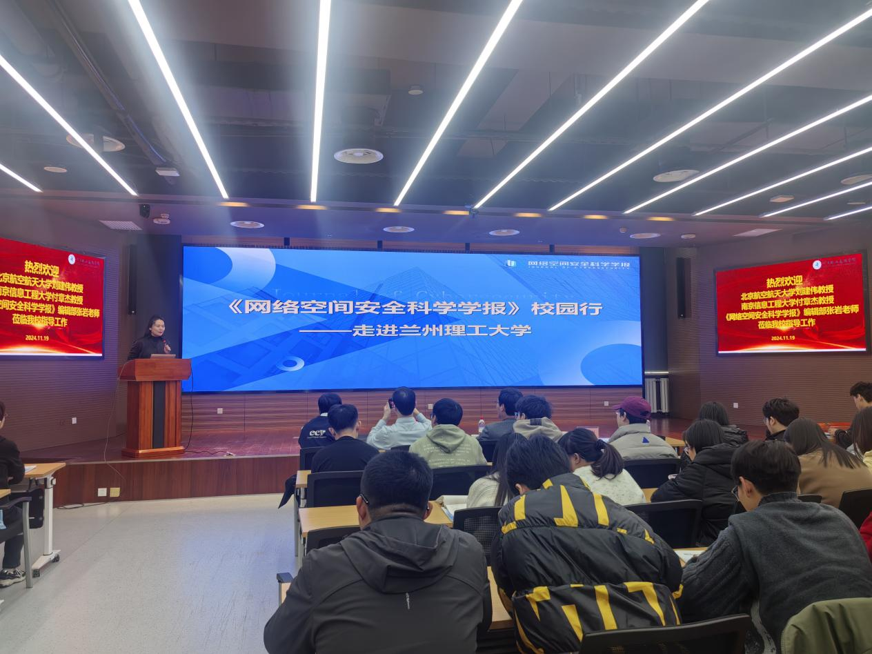 张岩老师作为主讲嘉宾介绍了《网络空间安全科学学报》学术论文的最新研究动态和学报发展的目标,为师生提供了一个了解网络空间安全领域最新动态和前沿知识的平台。