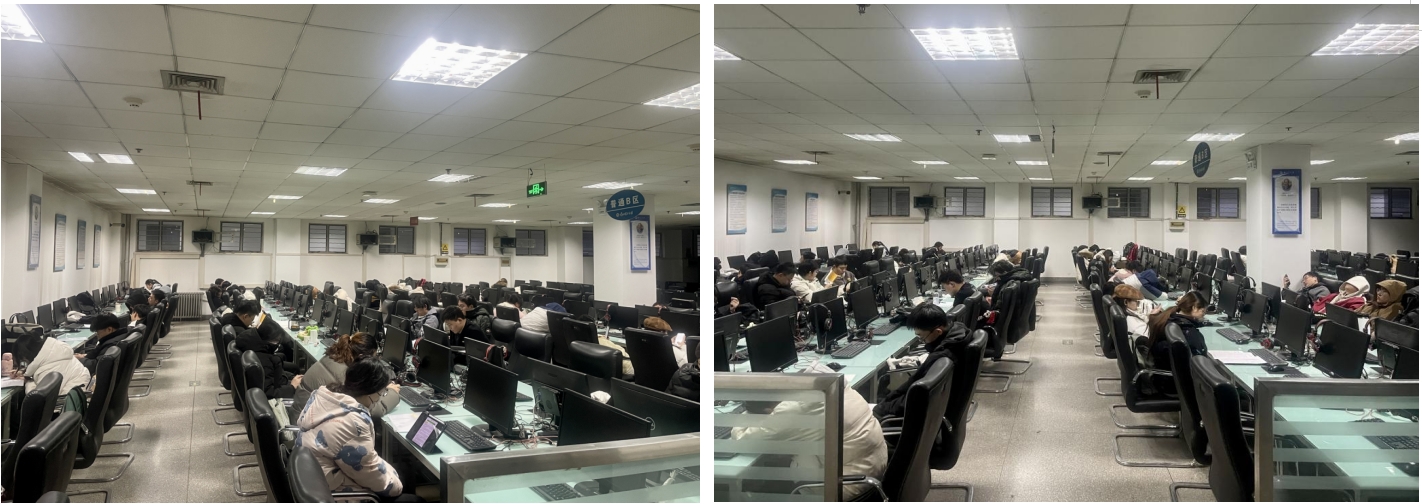 设置休息区,旨在帮助考生能够在寒冷的天气下有温暖舒适的场所进行休息调整,缓解上午考试的疲惫,从而为下午的考试养精蓄锐。在为期两天的考试中,考生们午饭结束后纷纷来到休息区,利用两场考试间的休息时间进行放松。现场安静有序,有的考生静静翻阅资料,有的考生闭目养神,有的同学轻声讨论着试题,为下午的考试做最后的准备。