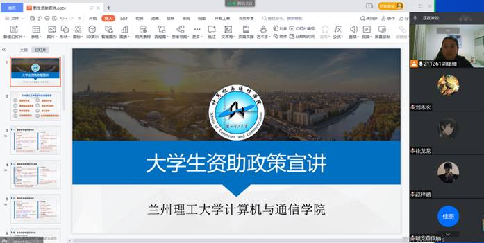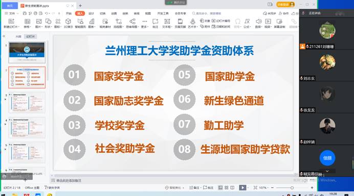 辅导员刘珊珊老师在腾讯会议上对2021级本科新生进行了校纪校规入学教育,列举实例对高等学校学生行为准则、国家教育考试违规处理办法、学生宿舍管理规定和学生违纪处分规定进行了详细讲解,为同学们阐明大学生之“可为”与“不可为”。同时,为了落实和积极宣传党和国家对高校的相关资助政策,使新生对国家和学校的奖助政策有一个全面的了解,提升资助育人工作水平,刘珊珊老师围绕奖助贷政策,对国家资助政策的要求以及我校相关奖项设置、奖励金额、评定比例、评定条件等进行了详细讲解。讲解过程中,老师与同学们不时地进行线上互动问答,解答学生关于校纪校规和奖助学金的各类问题。
