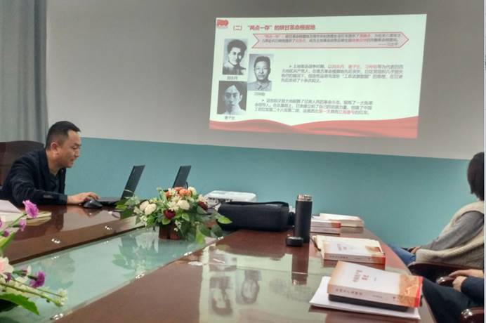 此次主题党日分为四个环节,第一个环节是学习《习近平总书记在党史学习教育动员大会上的重要讲话》精神;第二个环节是共同学习“新民主主义革命时期历史”;第三个环节是支部书记讲党课——学习中国共产党在甘肃的发展历史;第四个环节是落实“我为学生办实事”,主要对培养计划的合理性和双创能力提升等方面与学生面对面交流。