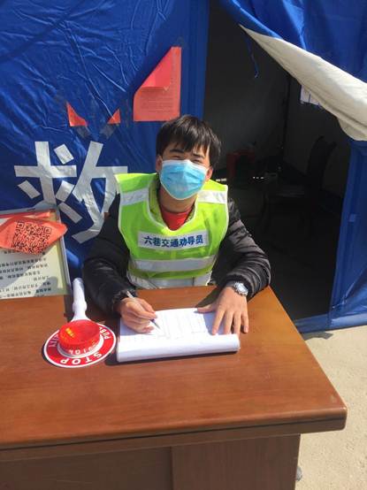 2017级学生吴桐认为,疫情就是一场看不见硝烟的战争,也是一场革命。在“革命”中,共青团员要扮演好“战士”的角色。在家复习专升本的吴桐同学毅然成为了一名志愿者,在定西市安定区凤翔镇友谊村村委会的指导下,负责外来人员的排查、登记及劝返工作。他和数十名青年志愿者在村口设立劝返点,对村民发放疫情相关宣传材料,讲解新型冠状病毒的危害及预防方式,督促外出村民佩戴口罩,劝诫村民没有急事不出门,对出入人员进行体温测量,登记出入车辆和负责消毒工作。