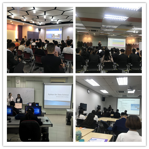 专业课程学习方面,贵院根据学生所学的专业,安排了相关专业课程。课程涉及计算思维、Python、计算机视觉、数据分析、无人机编程等领域的前沿理论研究和实践锻炼。其中副教授DrMaizatul Akmar Ismail通过阿里巴巴的具体实例讲解了RecSys 研究方法,并通过推荐系统和协同过滤的教学,使得同学们更容易理解及操作。Madam Mas idayu Md Sabri向同学们介绍了计算思维的六个概念,启发大家寻找更便捷的解题思维,并且通过游戏的方式,将理论带入实践中,使同学们能够更直观的理解本课程。Erma Rahayu博士从计算机视觉领域向大家概述了人工智能、多媒体信息安全以及电脑视觉的关键技术。Kasturi Dewi博士从Python的基本知识介绍出发,对数据的操纵和分析、导入和导出进行具体讲解,同时同学们通过Gupyter软件进行练习,使同学们受益匪浅。Aasmiza Abdul Sani博士用Python在可编程无人机中实现控制流算法。Hoo Wai Lam博士从不同角度使用不同工具对数据进行分析。
