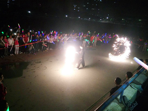 荧光夜跑,挥洒青春 ——桃子视频 举办“荧光夜跑”活动 “烟火舞”双截棍表演 大家挥舞荧光棒一,一起奔跑 为了展现工大学子的阳光和活力,锻炼同学们的身体素质和推进我校阳...